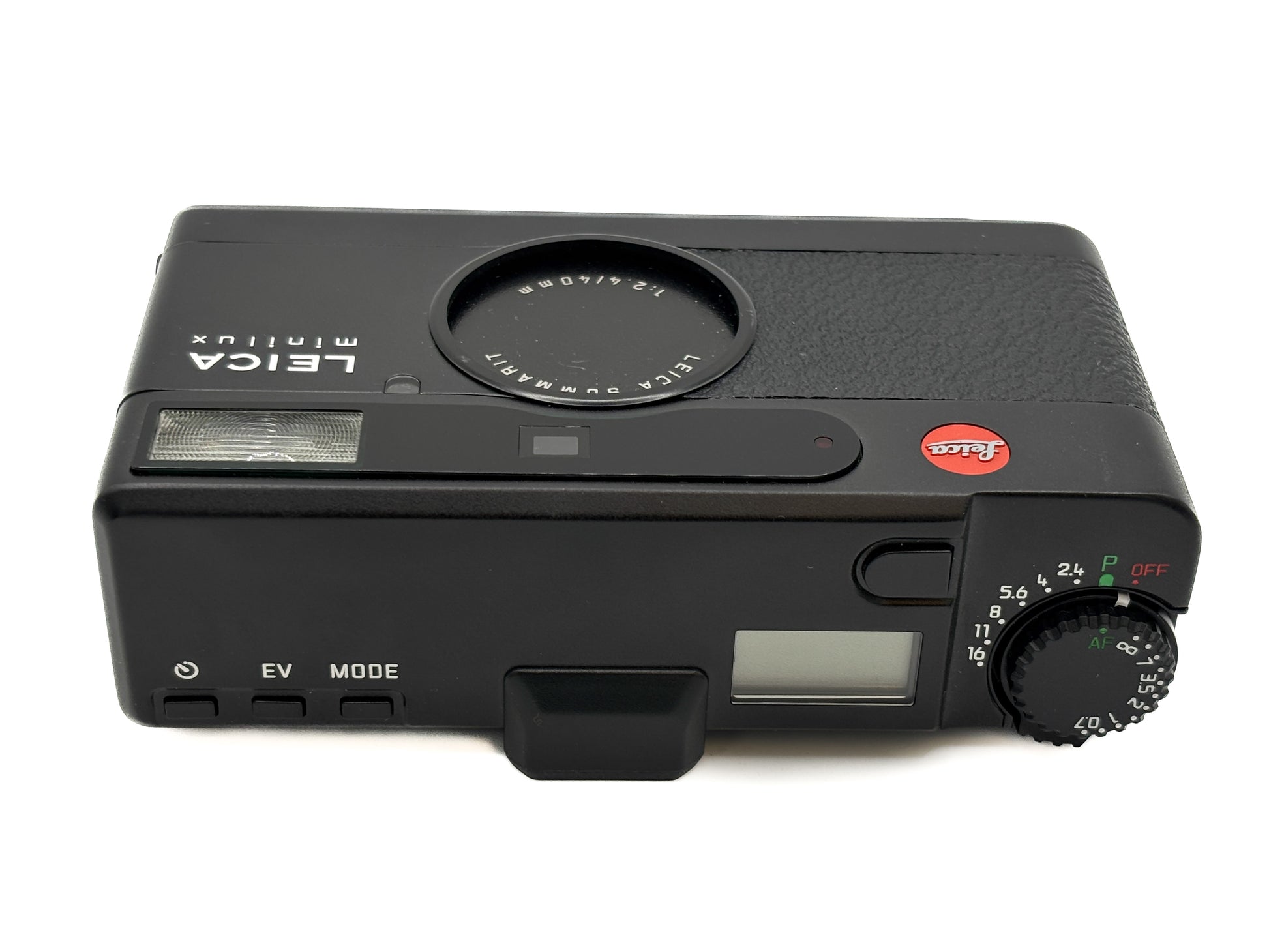 Description: Rare Leica Minilux black with the legendary 2.4/40mm lens. Near mint condition with original packaging, documentation and wrist strap.